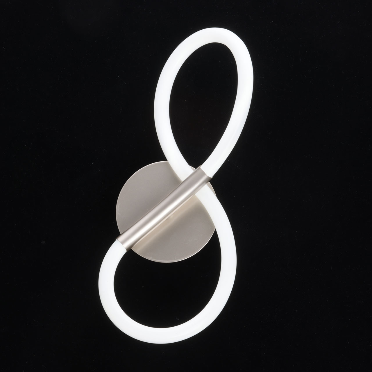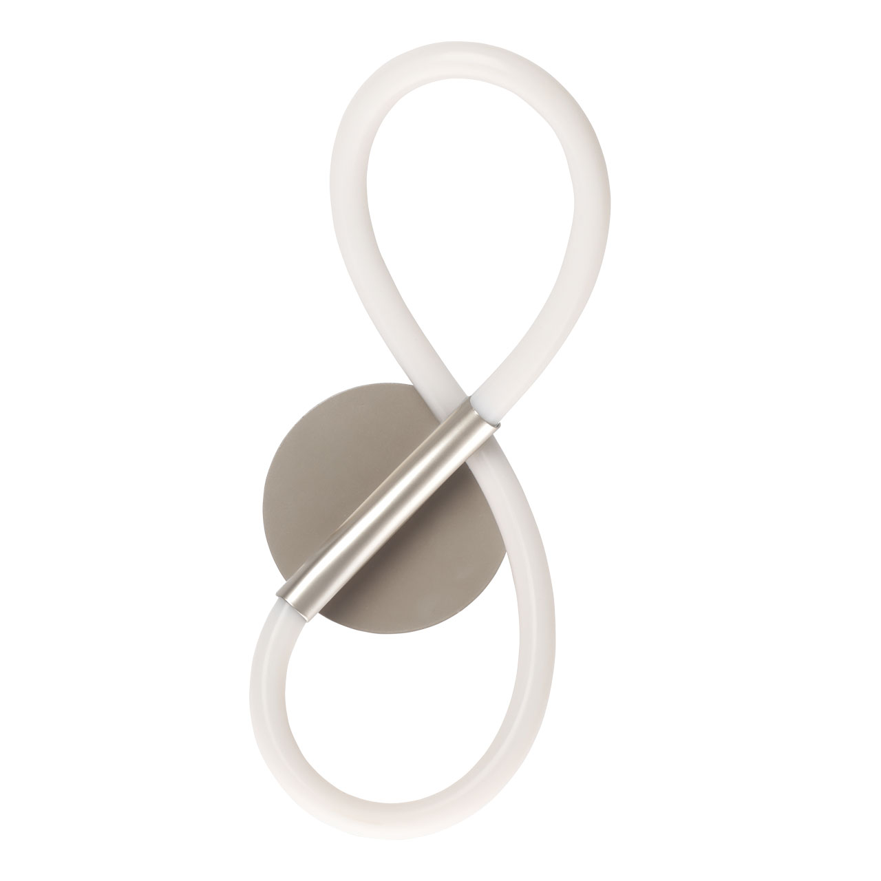 Металлическое основание бра окрашено в цвет никеля. Гибкий плафон настенного бра выполнен из белого матового силикона.