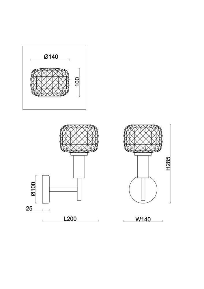 - Высота плафона (абажура): 100