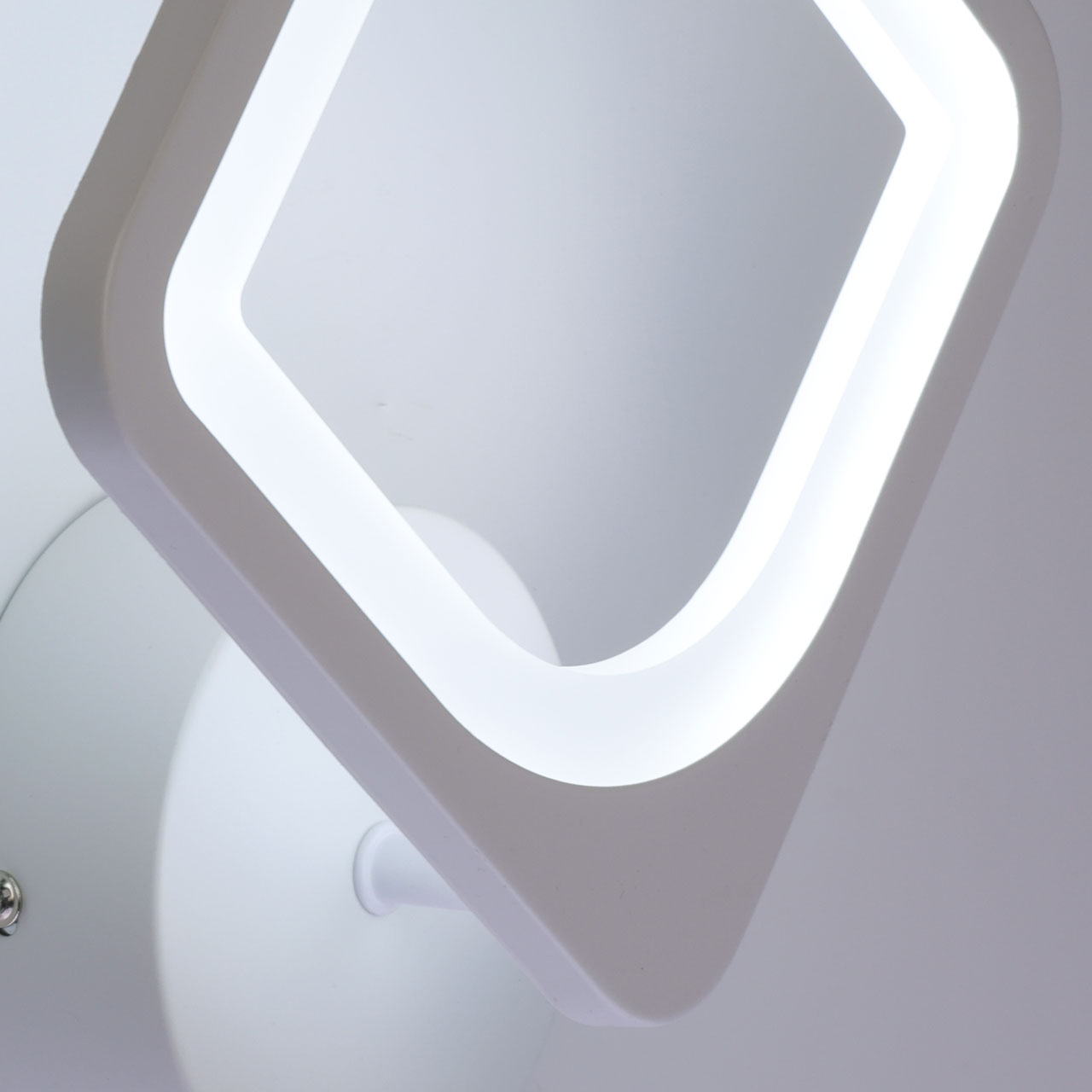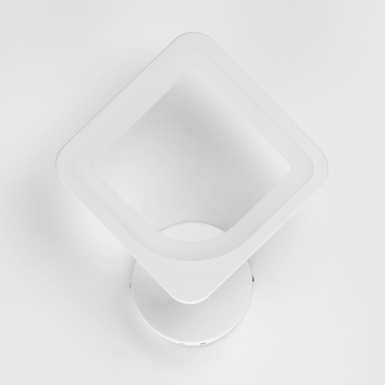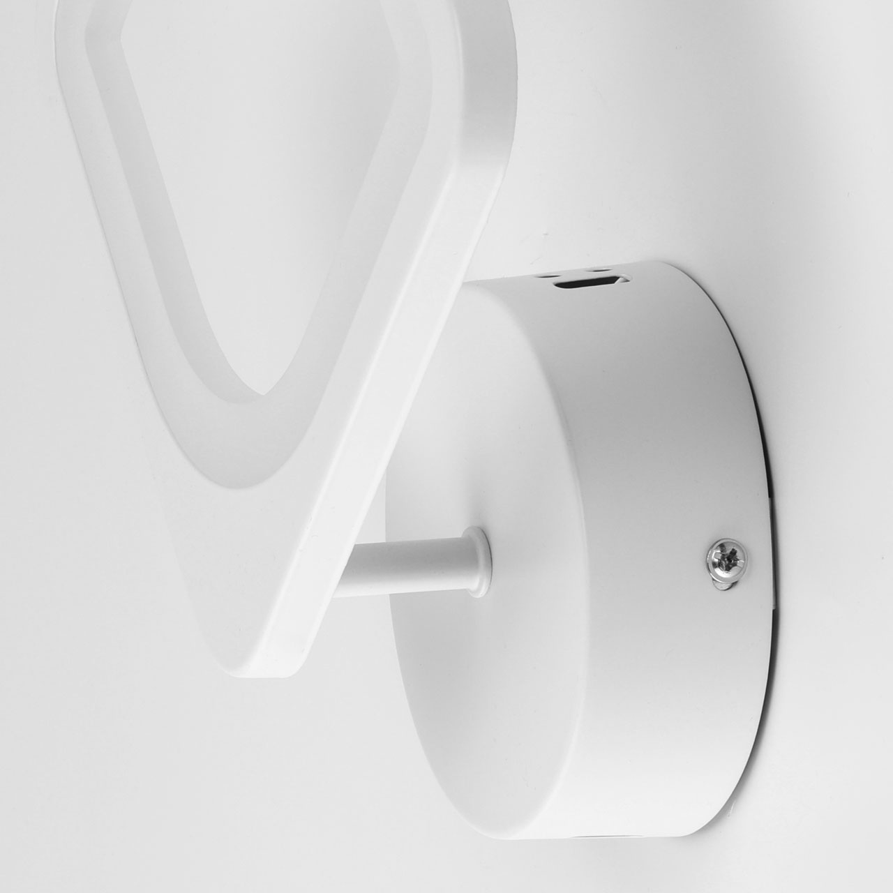 Металлическое основание настенного бра окрашено в белый цвет. Корпус плафона выполнен из сплава алюминия с цинком и окрашен в цвет основания. Светодиодные источники света закрыты белым матовым акрилом.