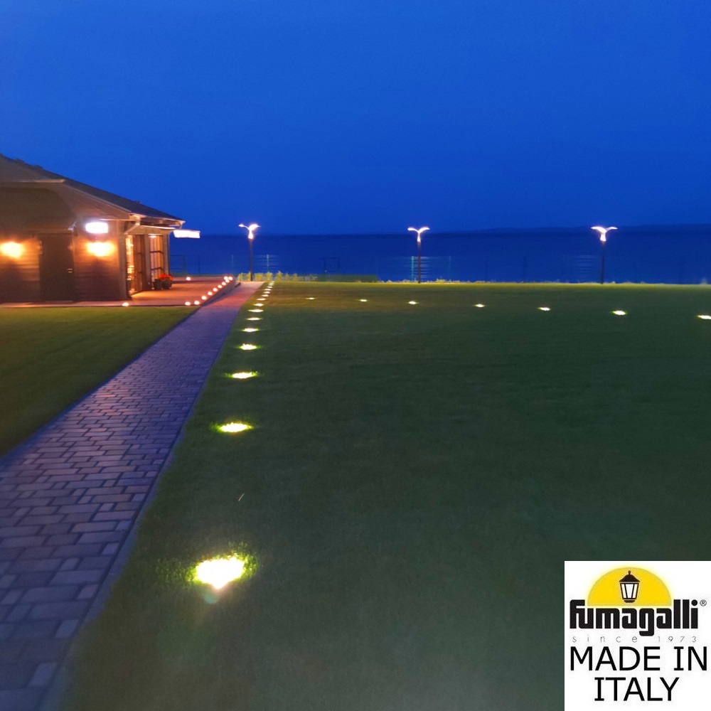 Грунтовые светильники FUMAGALLI серии CECI, модель CECI 160-3L - изготовлены в Италии. Основное предназначение - подсветка снизу фасадов зданий, элементов ландшафта, кустов, деревьев, светового дизайна, освещения парковок и парковых дорожек. Так же может использоваться для декоративного и технического освещения внутри помещений. Устанавливается в дорожное покрытие, полы, отмостку фундаментов зданий, газоны и другие горизонтальные поверхности. Светильник CECI расчитан на сложные условия эксплуатации: на него можно наезжать автомобильным колесом, ходить по нему, светильник не боится льда, воды, механической уборки. Сначала в поверхность монтируется и закрепляется закладной элемент "стакан", в который выводится электрический провод. Далее в данный закладной элемент устанавливается сам уличный светильник CECI и подключается электропитание. Корпус изготовлен из современного вандалостойкого, негорючего полимера RESIN не требующего окраски. Прочного, окрашенного в массе, не ржавеющего и не выгорающего на солнце. Все светильники пыле-влаго защищены по стандарту IP66. Корпус ландшафтного светильника не проводит электричество, относится к 2 классу электробезопасности. Рассеиватель выполнен из антивандального, не мутнеющего и не горючего PMMA. Срок службы светильника - не менее 20 лет. Не требуется трансформатор. Напряжение питания - 220 В. Температура использования от -60 до +90. При заказе требуется выбрать цвет корпуса.
