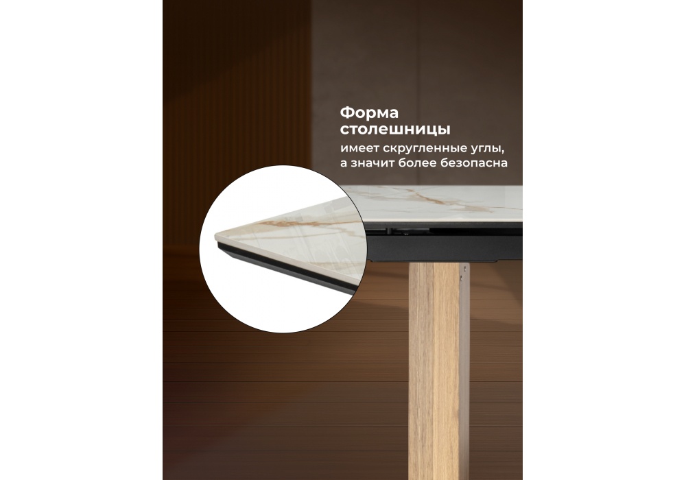Купить "Керамический стол раздвижной Woodville Монерон 180(240)x90 calacatta gold / дуб монтана 621194"