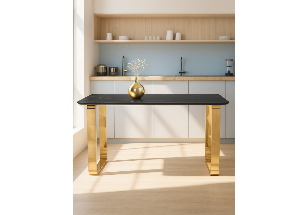 Купить "Керамический стол Woodville Селена 4 180х90 черный мрамор / золото 606414"