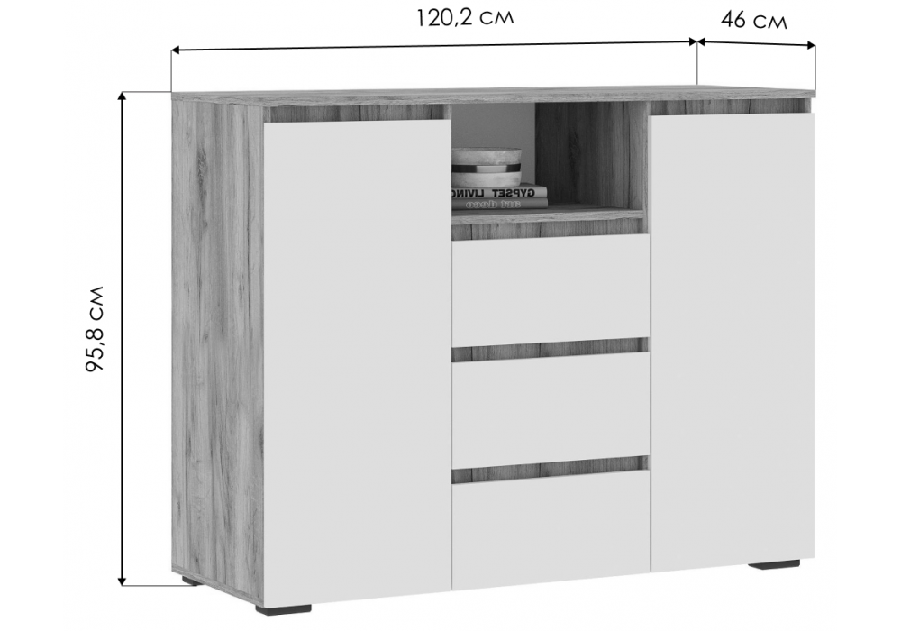 Материал каркаса - ЛДСП; Цвет каркаса - Белый; Ширина - 120,2; Глубина - 46; Высота - 95,8;