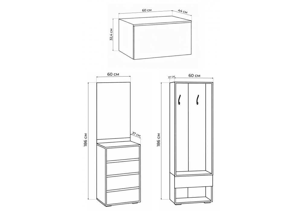 Состав комплекта 593733 -навесной шкаф , 619908- готовая прихожая , готовая прихожая -615371