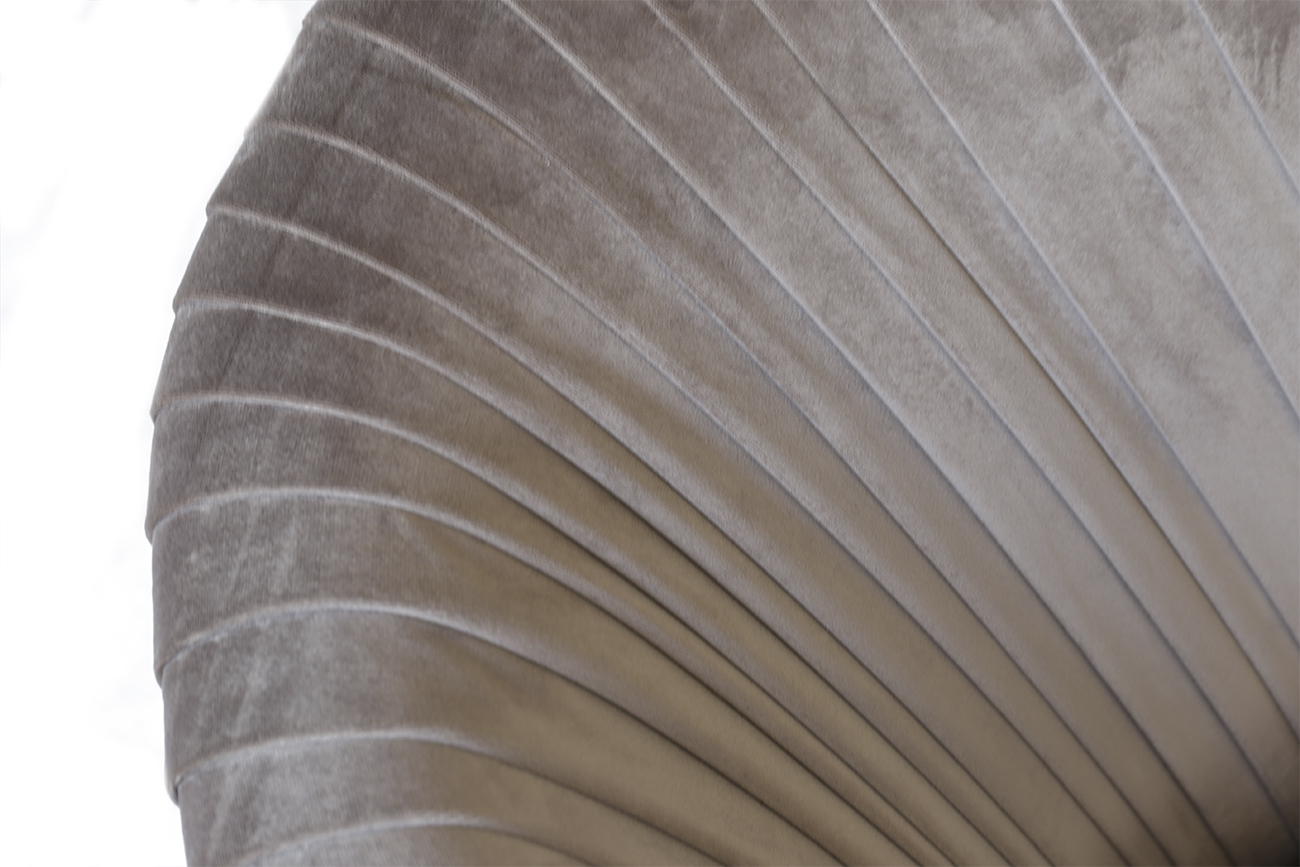 Велюровое кресло выполнено в изысканном авторском стиле. Спинку модели украшает элегантная драпировка, а корпус – позолоченные металлические вставки. Серо-коричневая обивка сшита из качественной, изящной и приятной на ощупь ткани. Модель отличается сочетанием красоты и комфорта. Можно купить кресло в гостиную, банкетный зал или спальню – форма и стиль мебели располагает к использованию в различных современных обстановках.