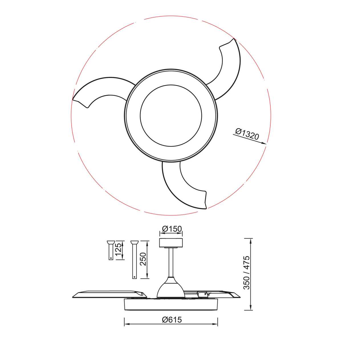 - Диаметр: 1320 мм (132 см)