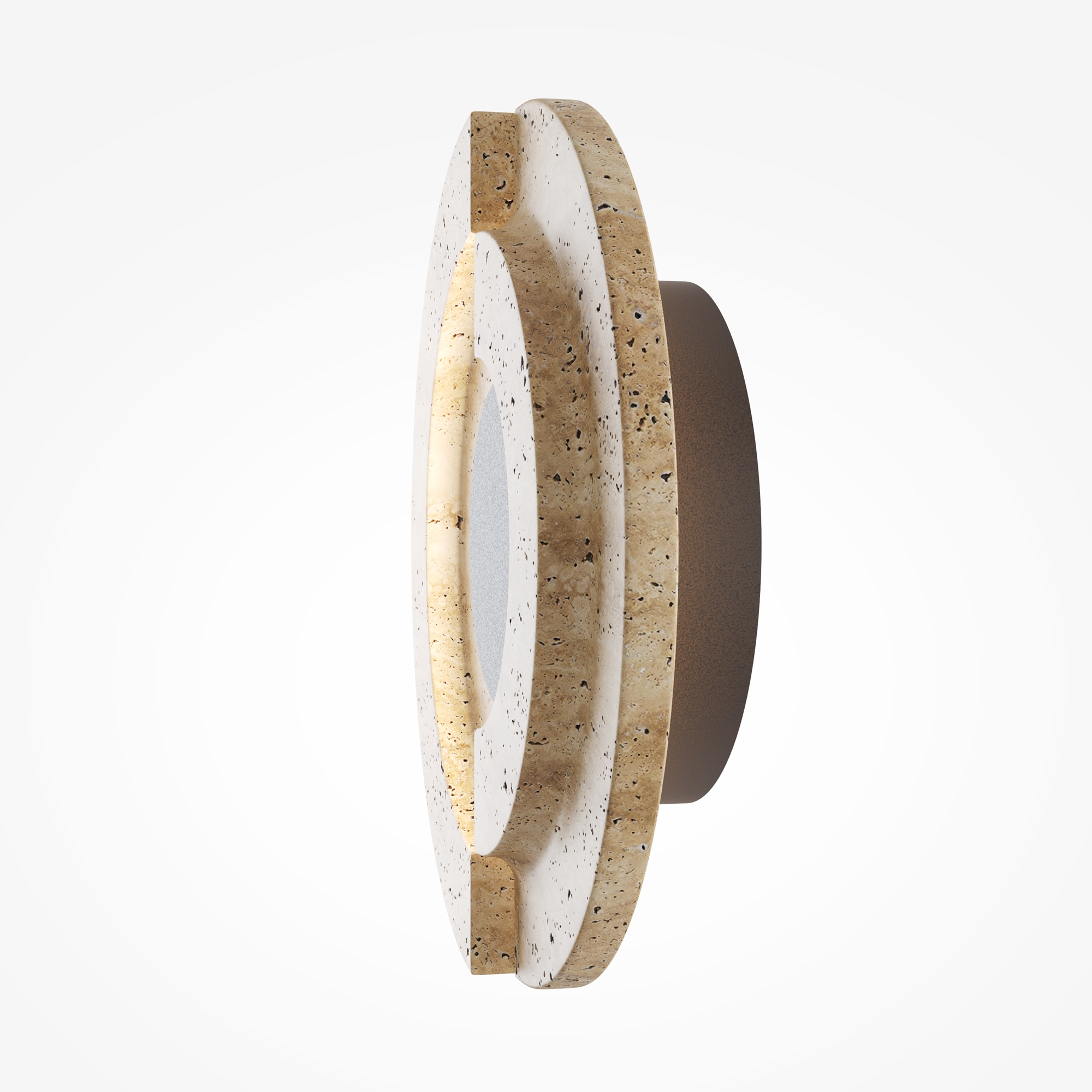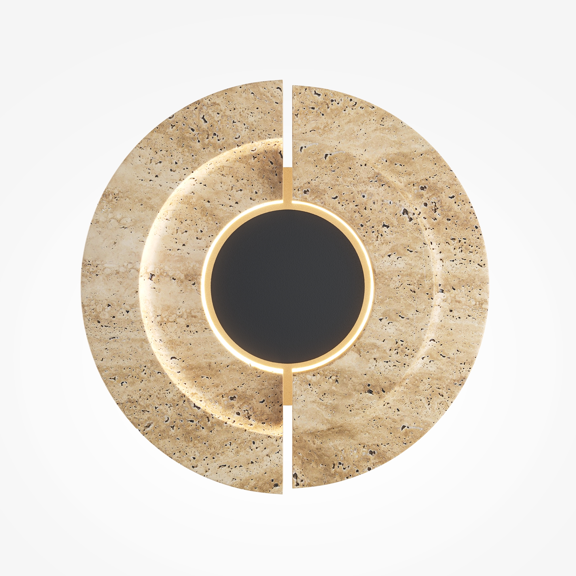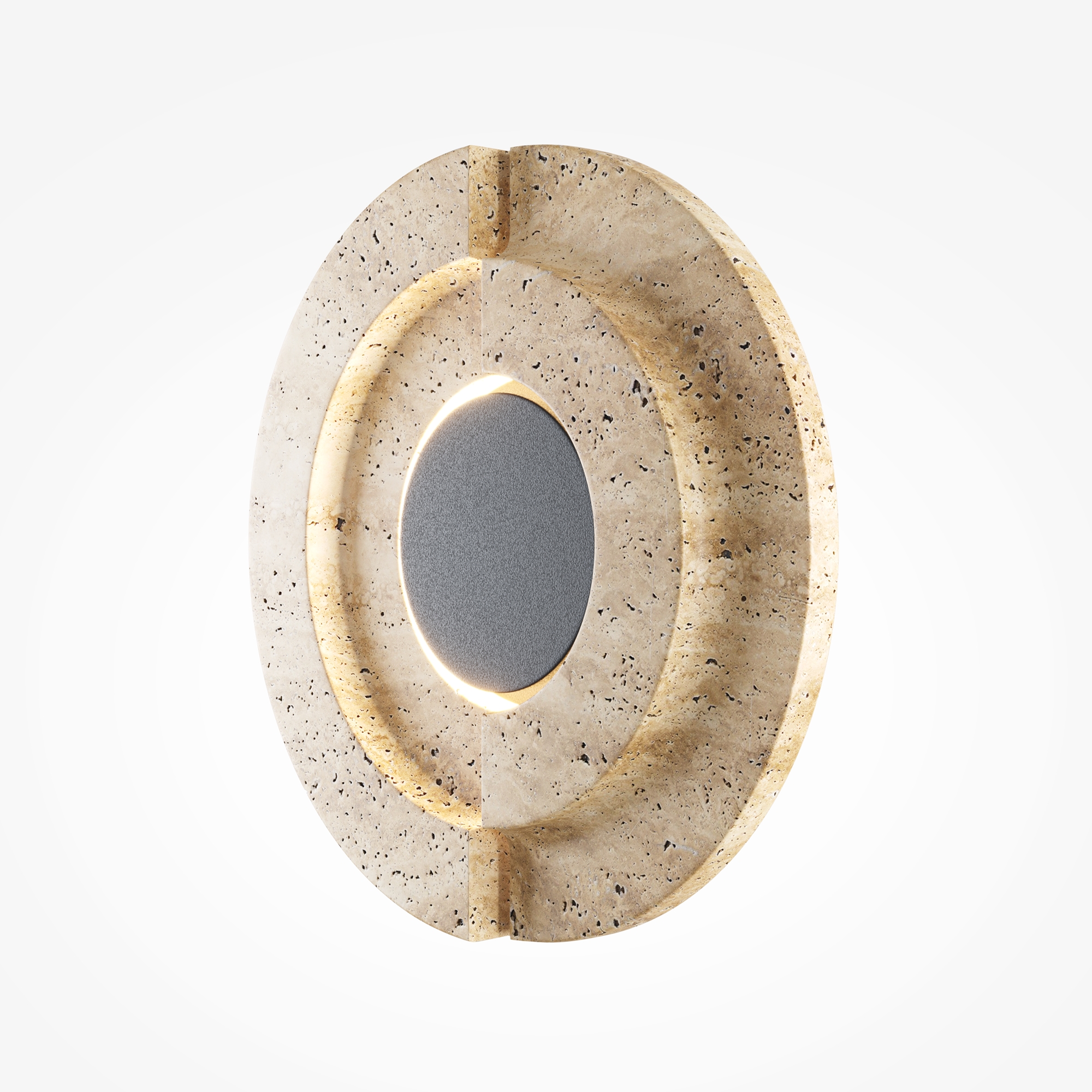 Арматура: металл черный матовый антибликовый. Основной материал: натуральный травертин с уникальным рельефным срезом. LED-источник 3000K, подсвечивающий внутренние грани камня и создающий мягкий ореол на стене. Настенный светильник-артобъект, вдохновленный эстетикой пустыни. Сочетание грубой фактуры камня и строгого металла. Монументальный дизайн с эффектом глубины и таинственности. Для создания акцентного освещения в современных интерьерах.