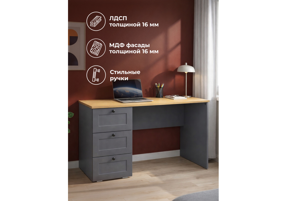 Письменный стол Woodville Опра серый графит / дуб золотой craft 676811 в Санкт-Петербурге