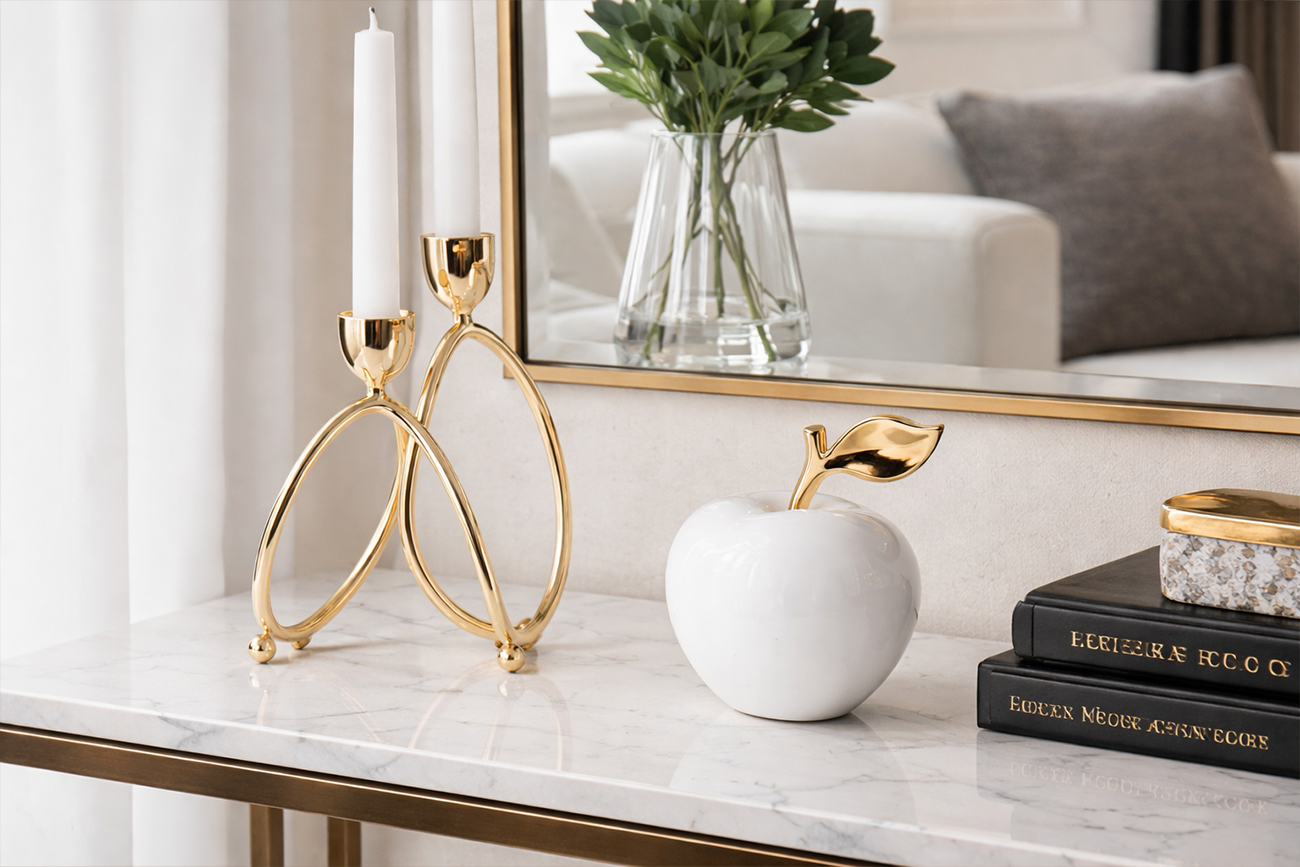 Декоративный подсвечник из никелированного металла цвета золота – пример идеального декора для интерьера в стиле ар-деко. Легкий, изящный, сверкающий, невообразимо красивый и элегантный в своей простоте. Он разнообразит праздничный стол, станет дополнением к новогоднему декору и хорошо справится с ролью арт-объекта. Его главные задачи – создавать уютную романтическую атмосферу, ненавязчиво украшать помещение, уместно и статусно выглядеть на фоне окружающих вещей. За счет своей оригинальной формы металлический подсвечник придает изысканности и аристократичности даже скромным минималистичным помещениям.