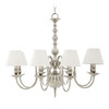 Люстра Bourbon из никелированного металла. Текстильные абажуры белого цвета.