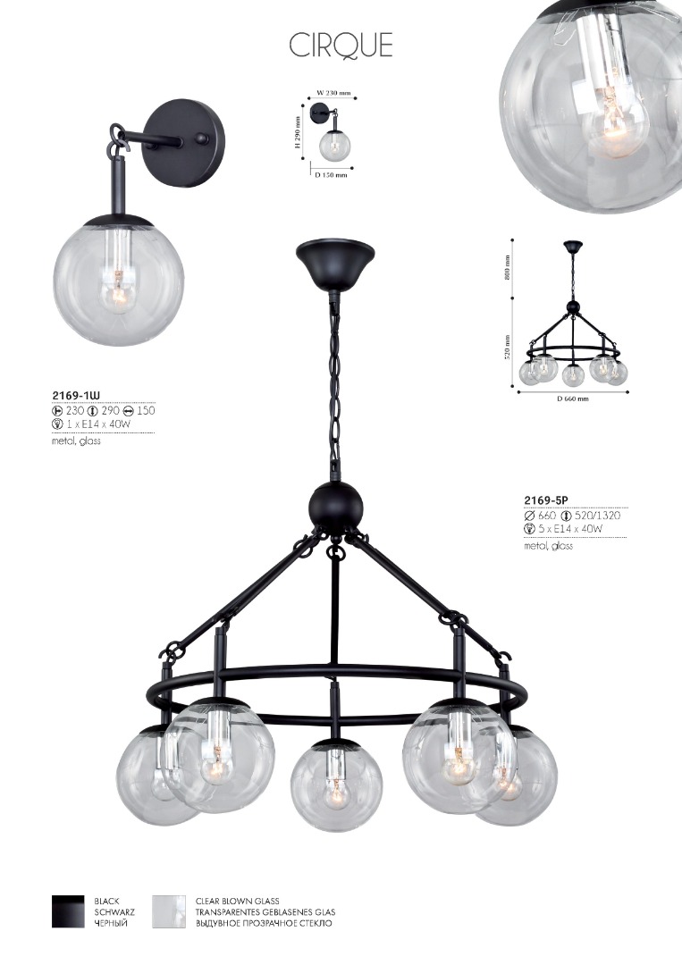 - Цвет плафонов: Прозрачный