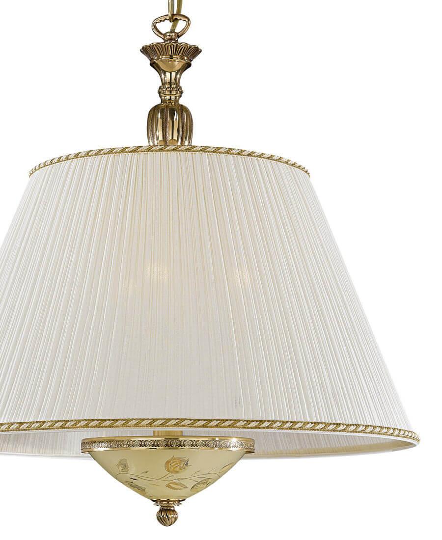 Подвесная люстра Reccagni Angelo L 6522/50 Итальянского производсва – уникальное сочетание высокого качества и удивительных фактур. Этот светильник Классического стиля хорошо подойдет Для спальни и придаст помещению мягкий и приятный свет. Плафоны белые из ткани. Арматура золотая из металла. Кол-во ламп - 3шт. Общая мощность 180W