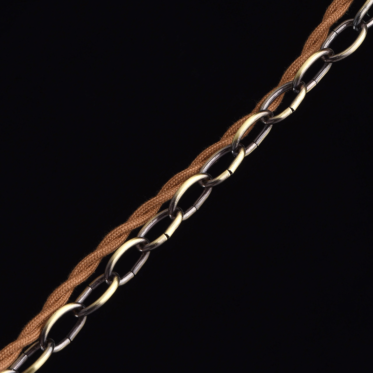 Основание светильника выполнено из сплава железа и гальванизирована в цвет античной бронзы с последующим патинированием. Стеклянный плафон отлит в сложную объемную форму. Светильник декорирован винтажным шнуром в текстильной оплетке коричневого цвета.