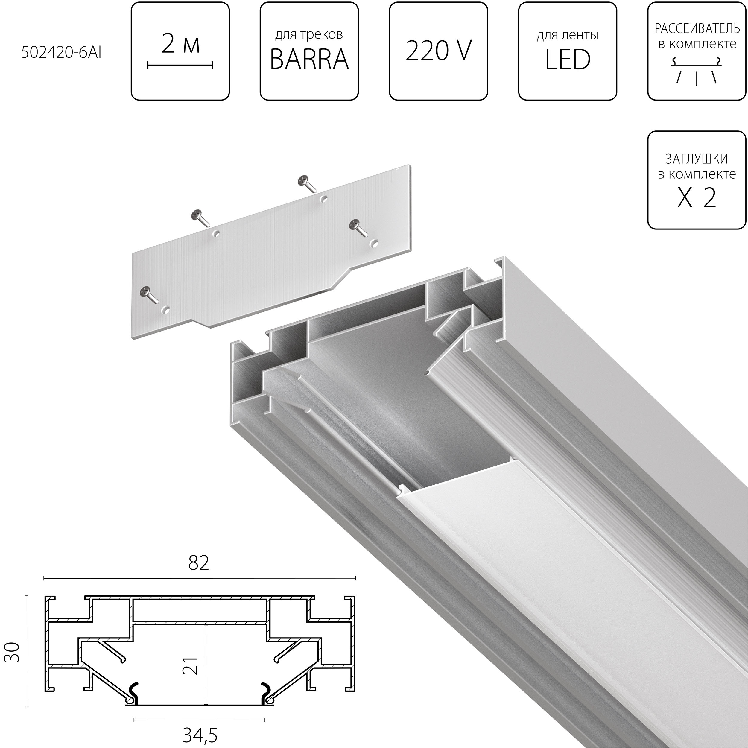 Профиль встраиваемый в натяжной потолок под LED ленту Lightstar Barra Base 502420-6AI в Санкт-Петербурге