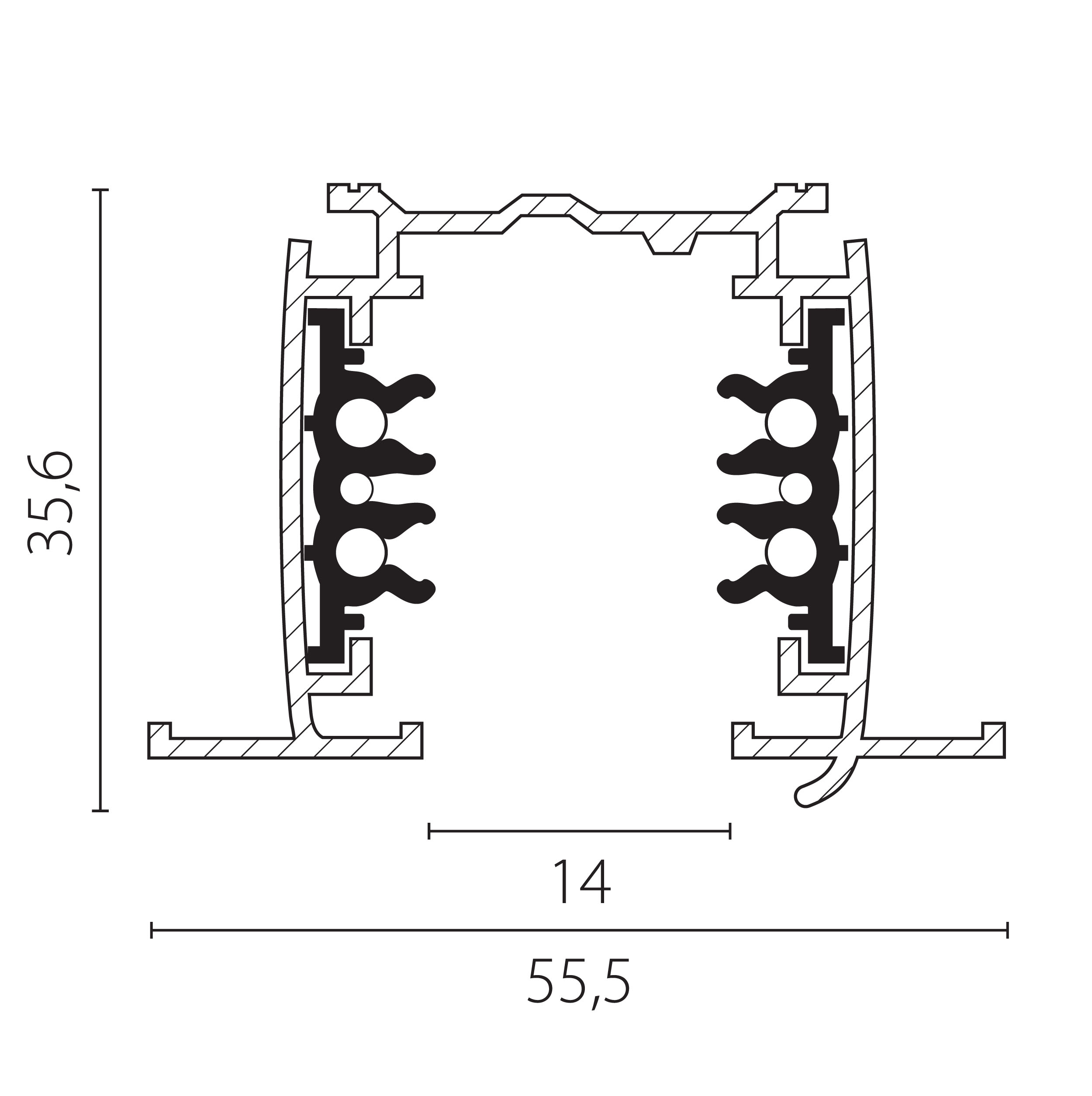 Купить "Шинопровод трехфазный шестиконтактный встраиваемый 2м Quattro/DALI Lightstar Quattro/DALI 503035-R-DALI"