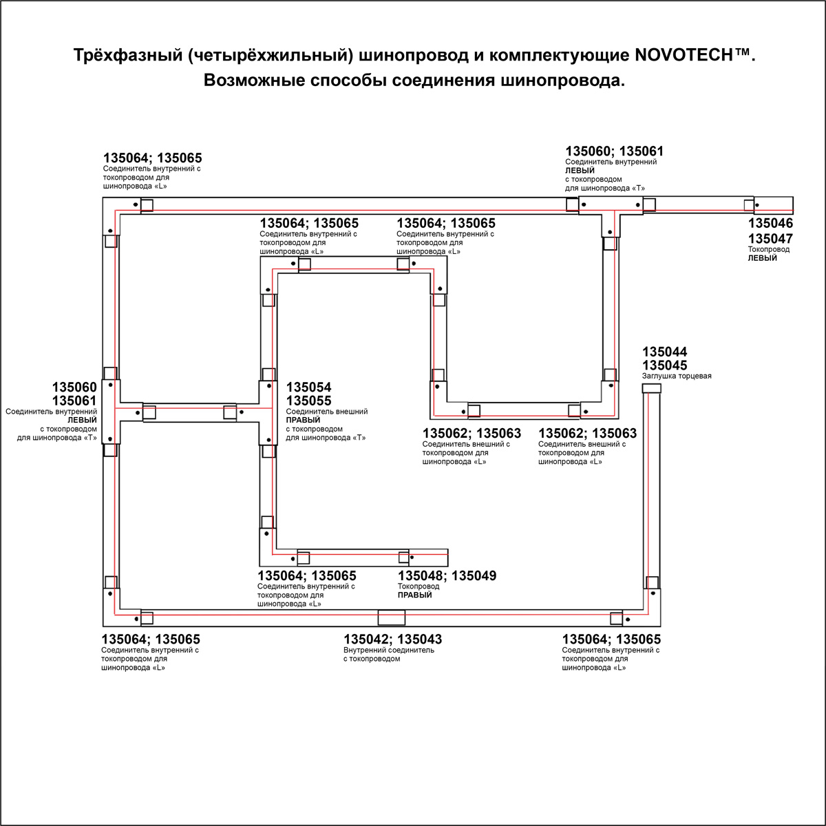 Купить "Соединитель T левый внешний с токопроводом для трёхфазного шинопровода Novotech 135056"
