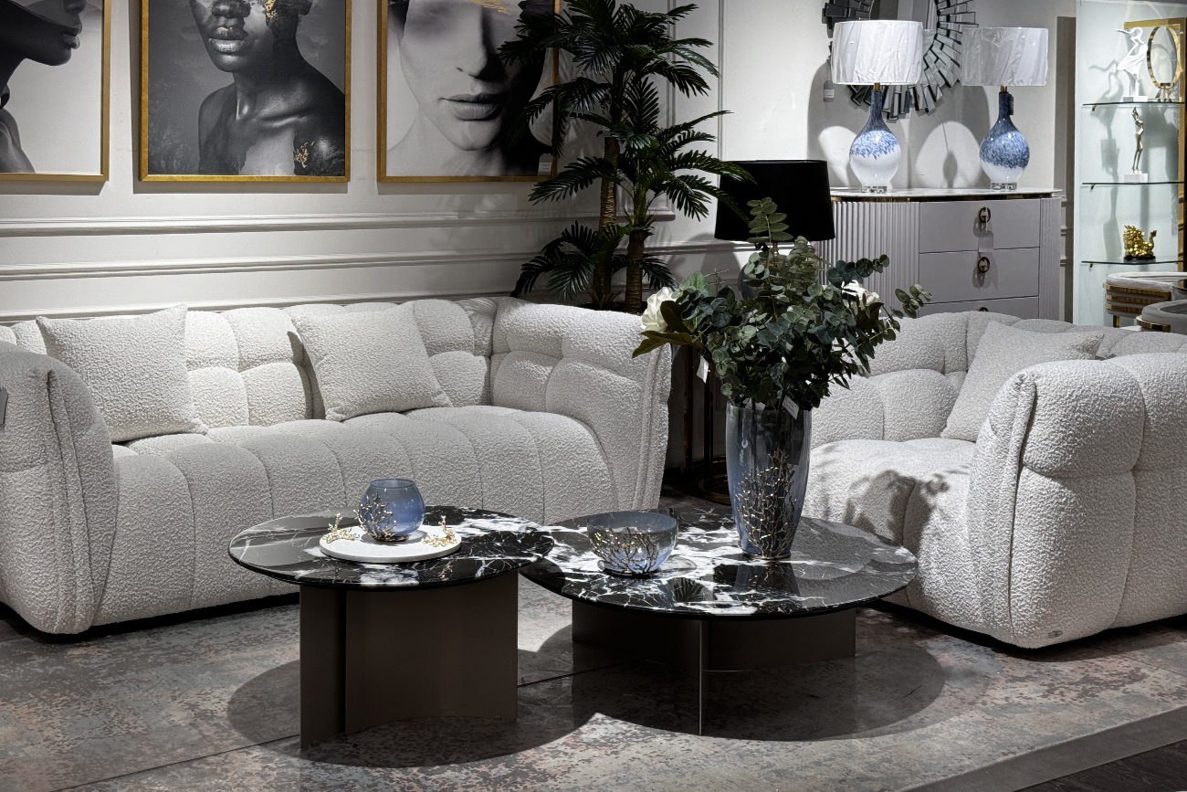 Роскошный журнальный стол с круглой столешницей из натурального мрамора с полимерным покрытием станет доминантой просторной гостиной или холла в стиле ар-деко. Столешница выполнена из натурального камня черного цвета с белыми прожилками. Уникальный природный рисунок мрамора, неповторимый в каждом изделии, делает этот журнальный стол похожим на произведение искусства. Опоры стола, выполненные из нержавеющей стали цвета бежевый металлик, выглядят легко и изящно. Эта модель стола исполнена из искусственного черно-белого мрамора (камень с полимерным покрытием). Основание из гнутых листов нерж.стали цвета бежевый металлик.