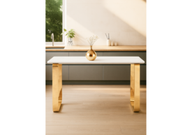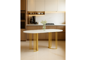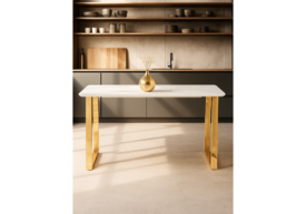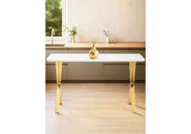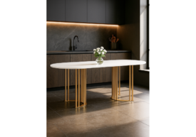 Стол деревянный Woodville Хьюго О 180х90 белая шагрень пленка / золотые ноги 620416