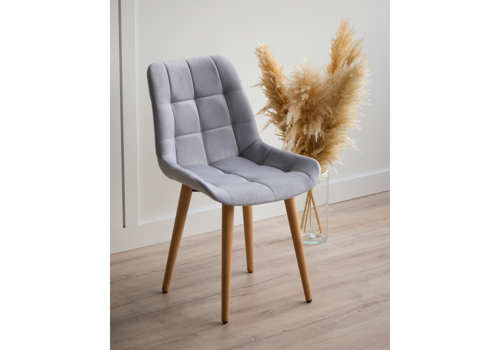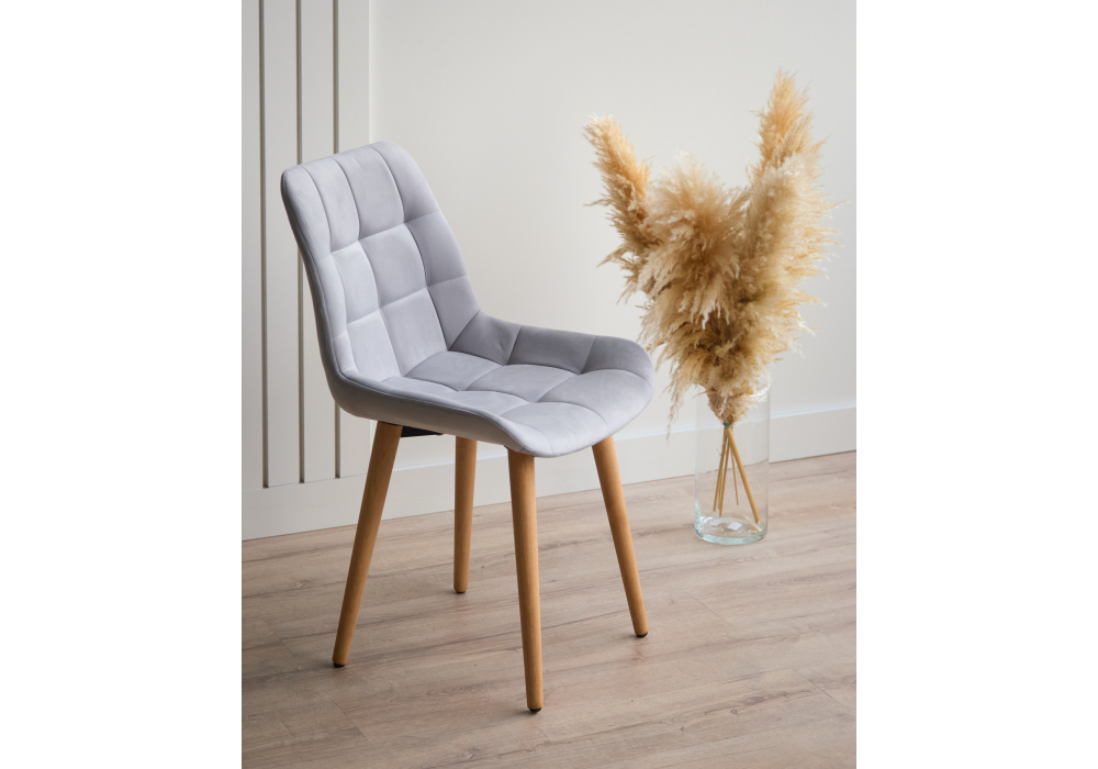 Материал каркаса - дерево; Материал сиденья - велюр; Материал обивки - велюр; Цвет ножек - натуральный; Ширина - 50; Глубина - 60; Высота - 80; Ширина сиденья - 44; Глубина сиденья - 41; Высота сиденья - 48;