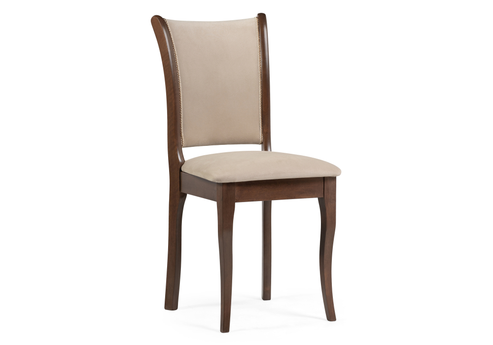 Материал каркаса - Массив березы; Материал сиденья - Ткань; Материал ножек - Массив березы; Материал обивки - Ткань; Цвет каркаса - Орех; Цвет сиденья - Бежевый; Цвет ножек - Орех; Цвет обивки - Бежевый; Ширина - 43; Глубина - 42; Высота - 90; Ширина сиденья - 40; Глубина сиденья - 42; Высота сиденья - 48;
