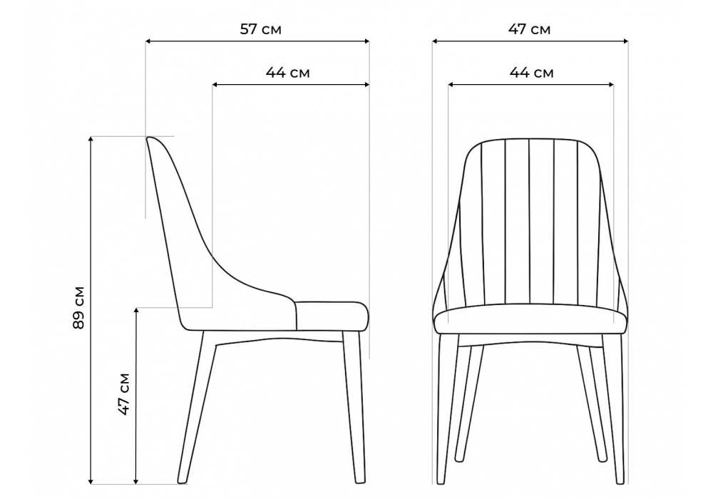 Материал каркаса - металл; Материал сиденья - велюр; Материал обивки - велюр; Цвет ножек - черный; Ширина - 47; Глубина - 57; Высота - 89; Ширина сиденья - 44; Глубина сиденья - 44; Высота сиденья - 47;