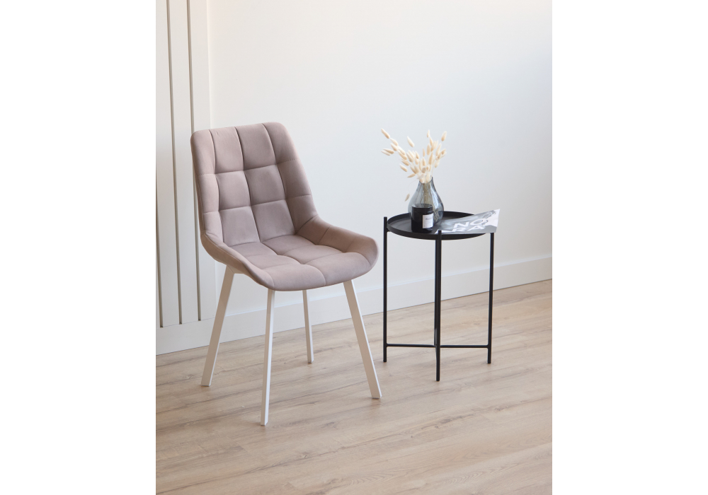 Материал каркаса - металл; Материал сиденья - велюр; Материал обивки - велюр; Цвет ножек - белый; Ширина - 50; Глубина - 60; Высота - 80; Ширина сиденья - 44; Глубина сиденья - 41; Высота сиденья - 48;
