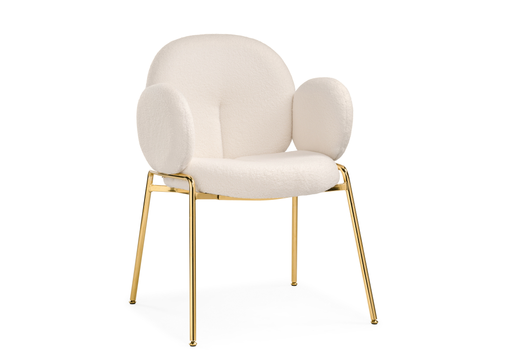 Стул на металлокаркасе Kalipso. Материал: каркас - металл золото, сиденье - ткань букле белого цвета. Выдерживает нагрузку до 100 кг. Идеально подойдет в гостинную, спальню. Высота подлокотников: 72 см. Материал каркаса - Металл; Материал сиденья - Ткань букле; Материал ножек - Металл; Материал обивки - Ткань букле; Цвет каркаса - Золотой; Цвет сиденья - Белый; Цвет ножек - Золотой; Цвет обивки - Белый; Ширина - 62; Глубина - 60; Высота - 85; Ширина сиденья - 43; Глубина сиденья - 44; Высота сиденья - 50;  Приобрести  стул Kalipso вы сможете  в интернет магазине 220 svet.ru.