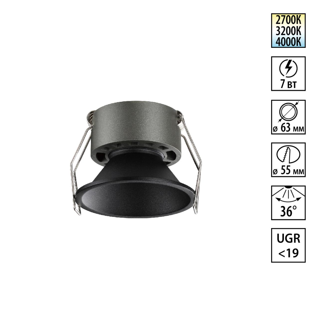 Купить "Светильник встраиваемый светодиодный с переключателем цветовой температуры Novotech NOVA 359849 черный"
