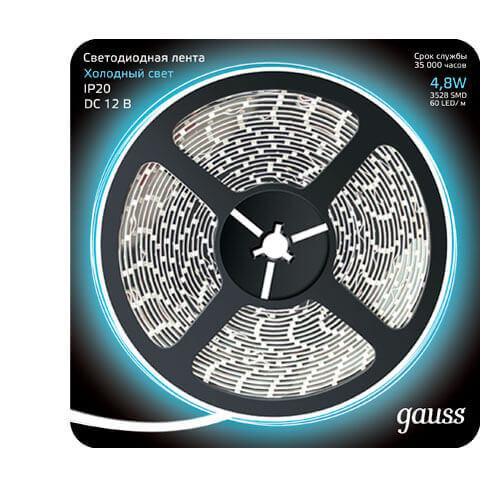 Светодиодная лента Gauss 4, 8W/m 60LED/m 2835SMD холодный белый 5M 312000305 в Санкт-Петербурге