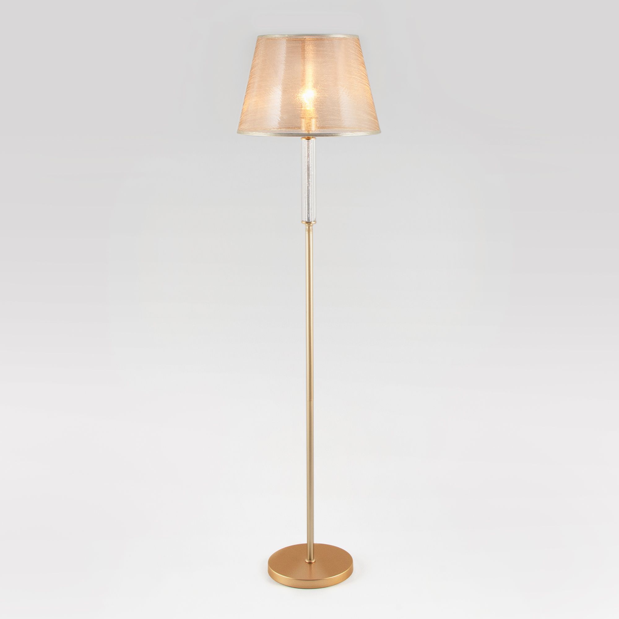 Напольный светильник с тканевым абажуром 01076/1 перламутровое золото - это стильный элемент светового дизайна в современных и классических интерьерах. Эффектный торшер со сменной лампой E27 поможет создать качественное дополнительное освещение на площади 4 м² и станет изящным украшением вашей спальни или гостиной.