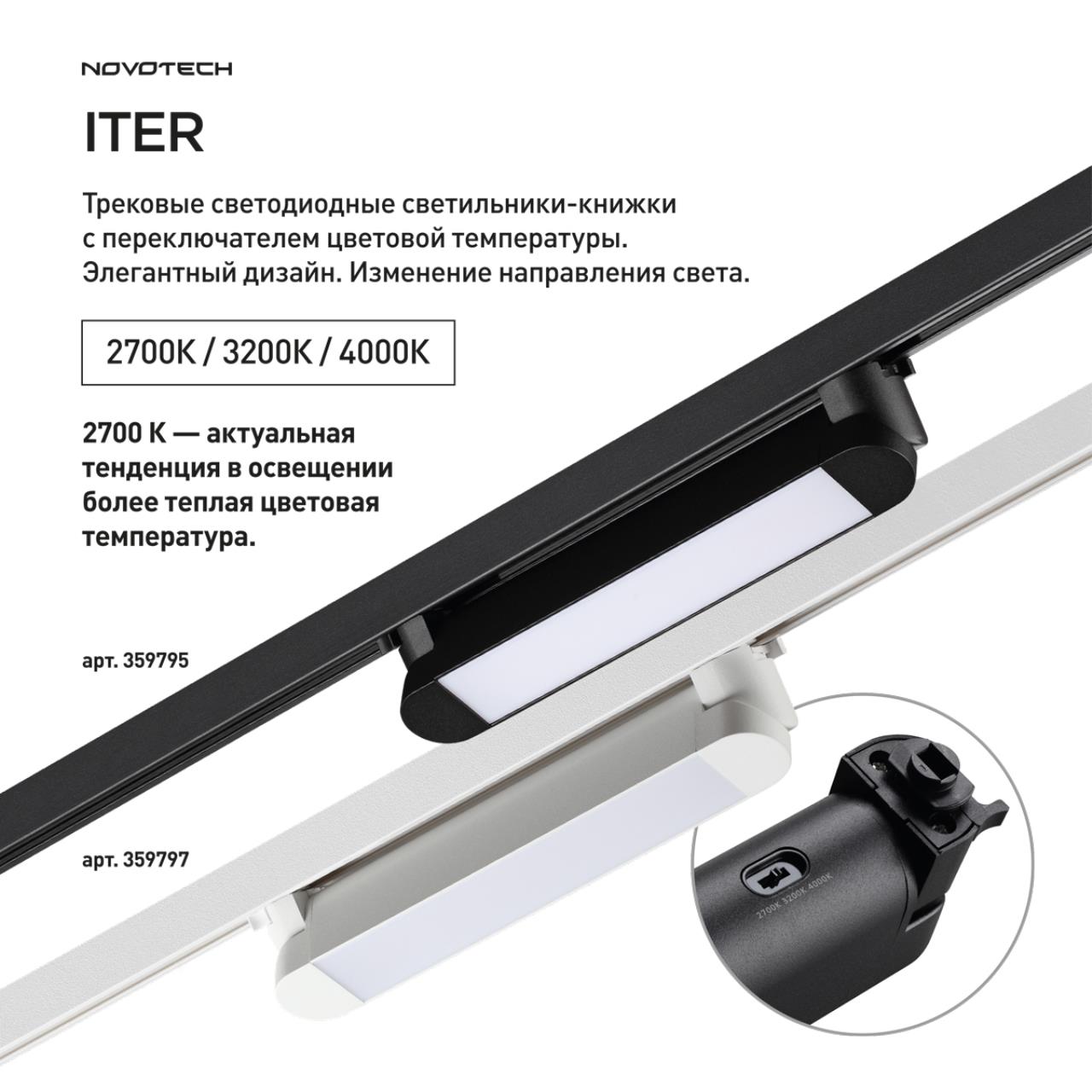 Трековый светильник однофазный трехжильный с переключателем температуры Novotech ITER 359797 белый в Санкт-Петербурге