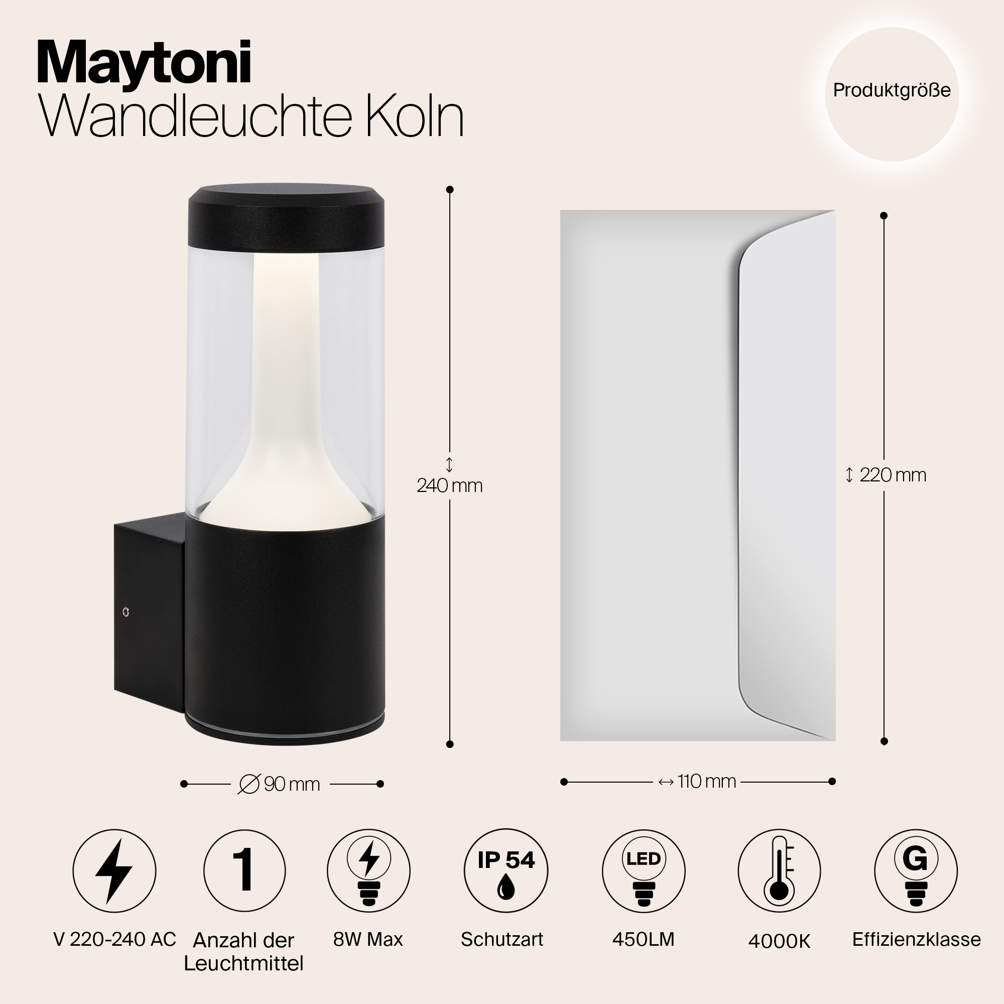 Уличный настенный светодиодный светильник Maytoni Koln O590WL-L8B4K в Санкт-Петербурге