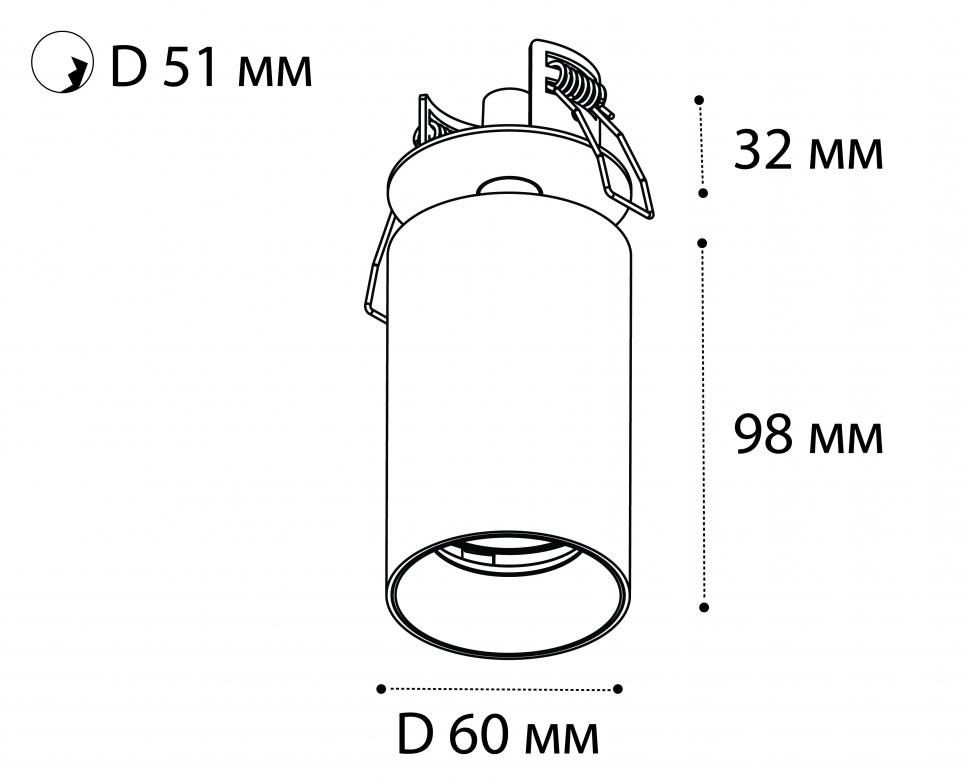 - Диаметр врезного отверстия: 51 мм (5.1 см)