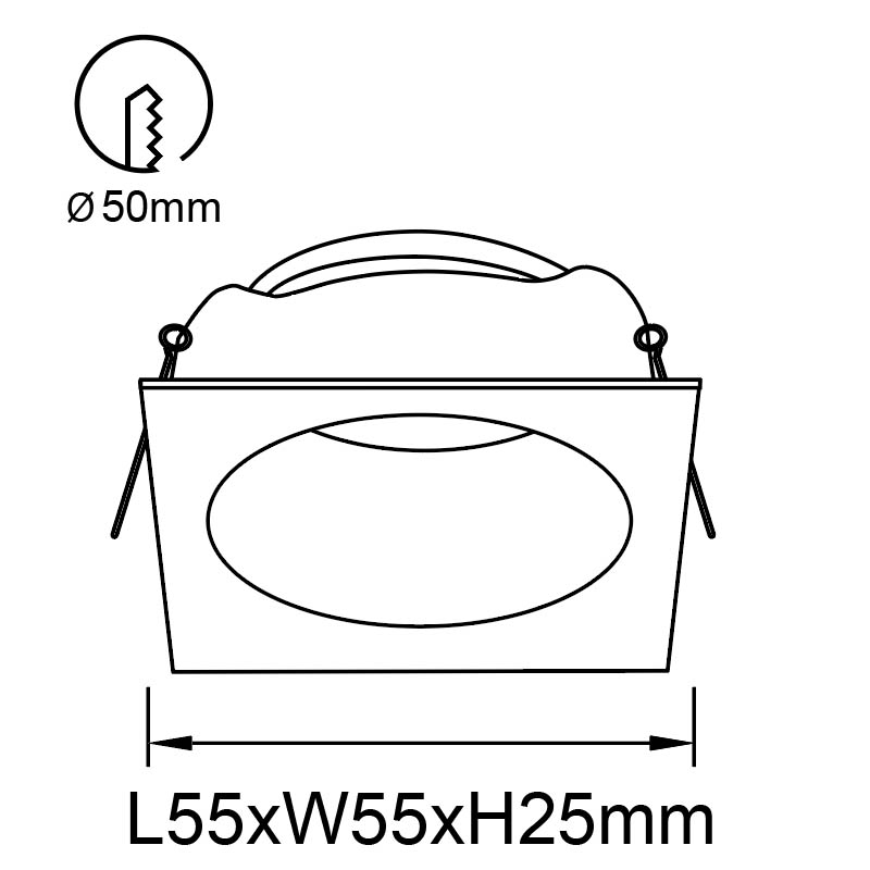 - Диаметр врезного отверстия: 50 мм (5 см)