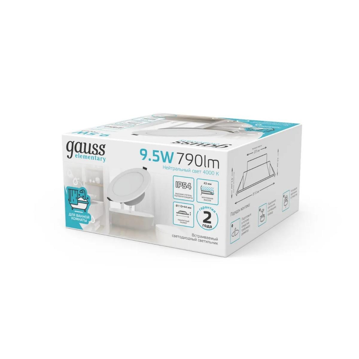 Встраиваемый светодиодный светильник Gauss Elementary Downlight 999420209 в Санкт-Петербурге