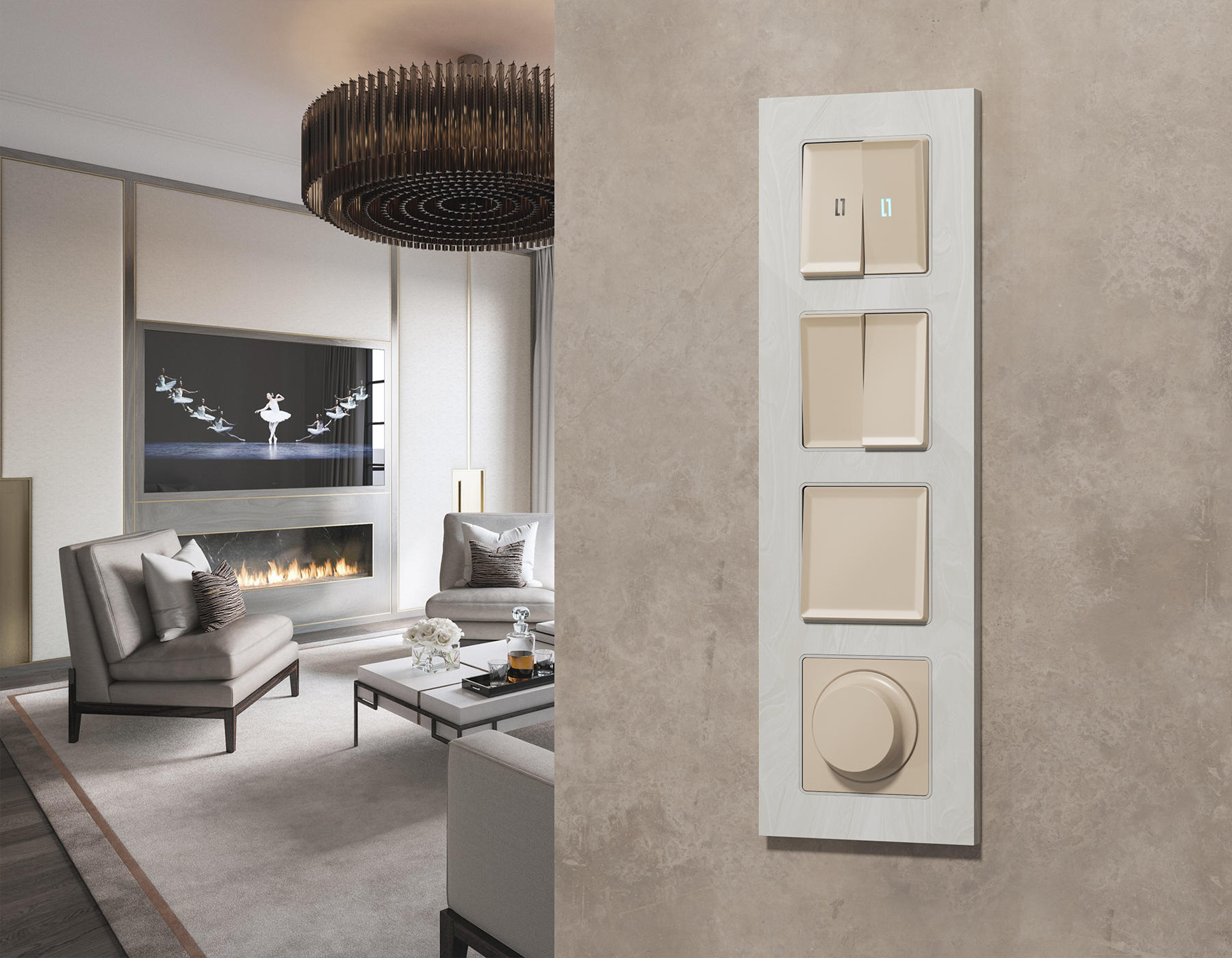 Многогранный ассортимент Ambrella Volt включает в себя механизмы, лицевые панели и рамки, а также комплекты, доступные в различных цветовых решениях. Продукция представлена в модульном исполнении, что позволяет гибко настраивать внешний вид и функциональность. Вам будет легко заменить лицевую панель, рамку или механизм, найдя идеальное сочетание цветов.